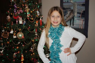 Next up, we have scarfs…again, for a minimum donation of $20, you could wear one of these… a beautiful turquoise blue and silver sparkle trim.