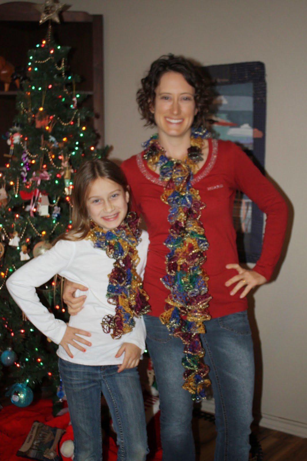 Or, varied colors of Christmas red. Some are longer than others, perfect for Mother & Daughter.