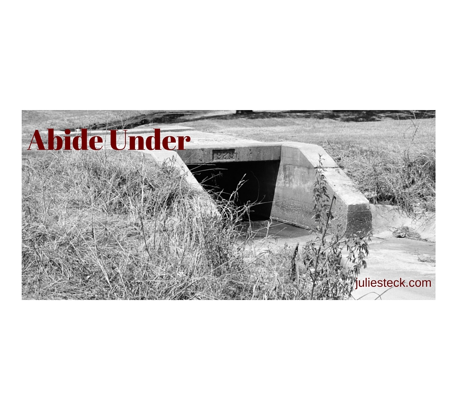 The answer I got… “abide under.” It’s a word translated “patience” many times in scripture. The word picture that comes to mind is hiding under a cement culvert while the hailstorm passes by. You abide under that shelter.